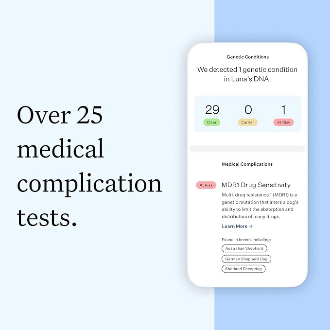 - Unlock 30 Essential Health Insights: Screen for genetic health tests (including MDR1 and IVDD) to get ahead of health risks and create a personalized care plan with your vet.
